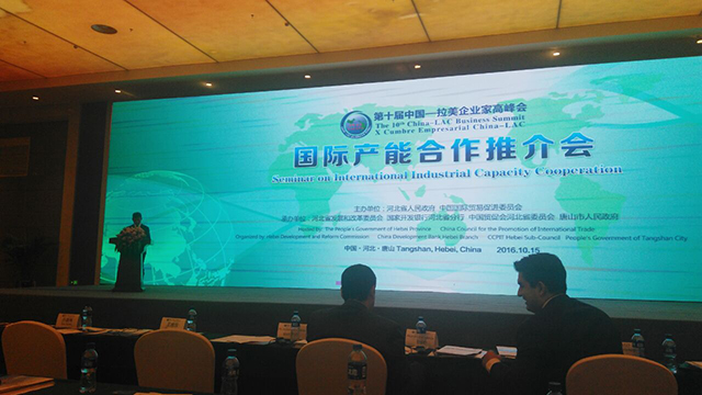 某某XXXX有限公司受邀参加了第10届中拉--企业家峰会,并出席了相关推介活动,并于与会贸促会、商务局领导,钢铁行业部分负责人和相关专业人士做了充分的交流。中拉峰会为期两天的行程,安排比较紧凑周密,取得了圆满成功。